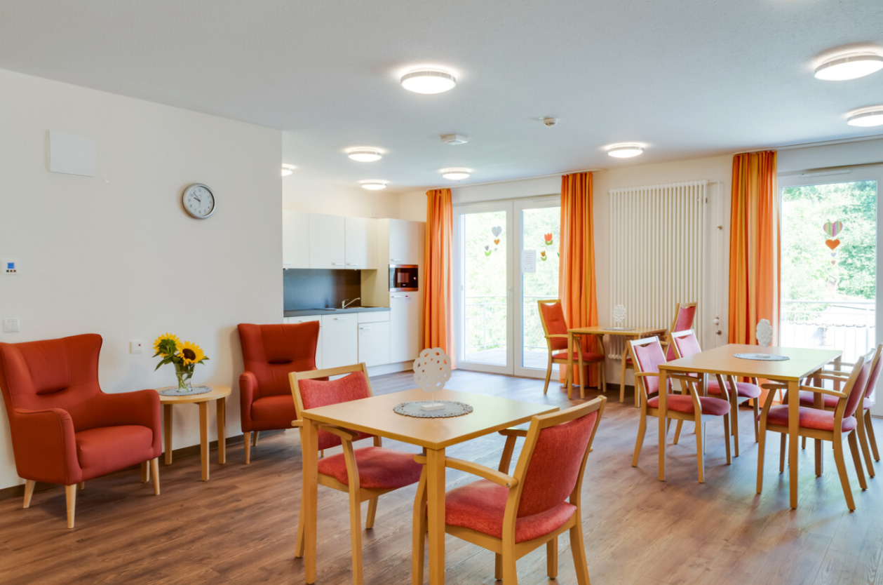 Die geschmackvoll ausgestatteten Gemeinschaftsräume sind bei den Bewohnern beliebte Orte der Begegnung und Geselligkeit. Bei schönem Wetter lädt die Dachterrasse mit Gartenanlage dazu ein, Zeit im Freien zu genießen.